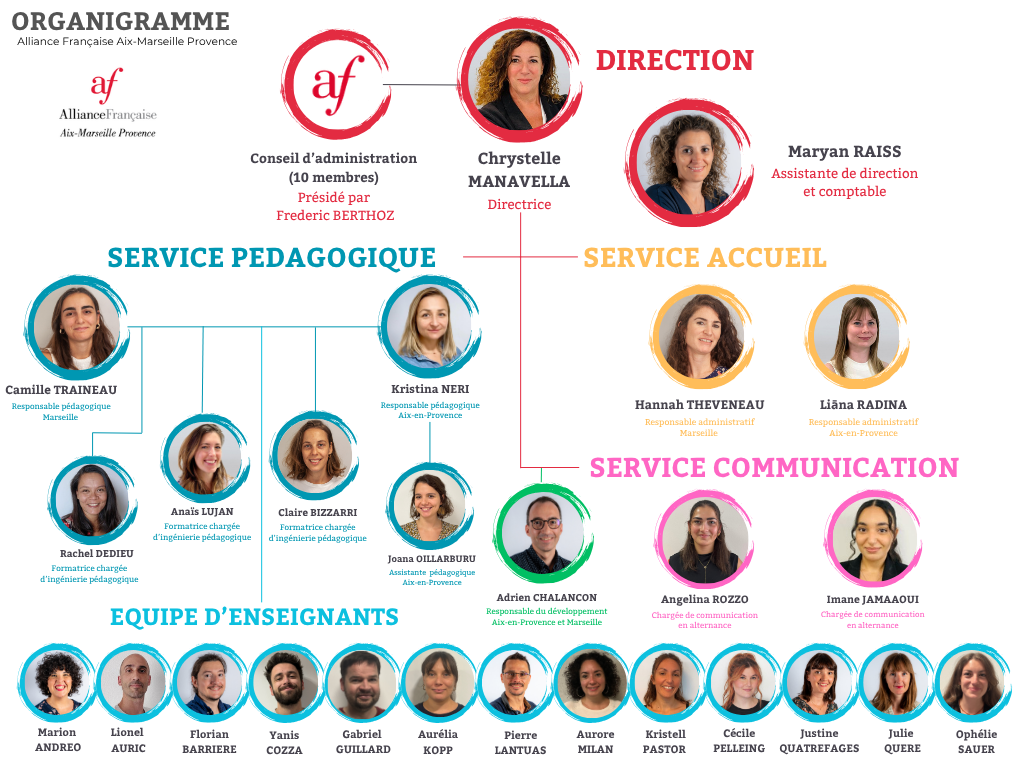 Découvrez avec plus de détails ceux qui vous accueilleront à l’Alliance Française d’Aix-Marseille Provence